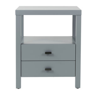 Bring your bedroom into the 21st century with this contemporary end table. Crafted from acacia wood, this compact piece showcases a clean-lined silhouette, a solid finish, and angular bar pulls for an on-trend look. The top and open lower tier let you show off framed family photos, a lamp, and a few of your favorite books, while two drawers on wooden slides offer concealed storage space so you can clear clutter. Best of all, it arrives fully assembled.